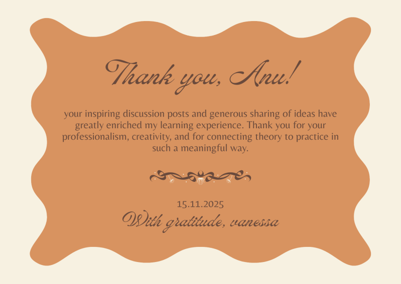 Artistic Expression: A thank-you piece dedicated to a colleague highlighting his strengths and reinforces the importance of learning alongside others to enhance teaching practices and create supportive experiences for students and their families.